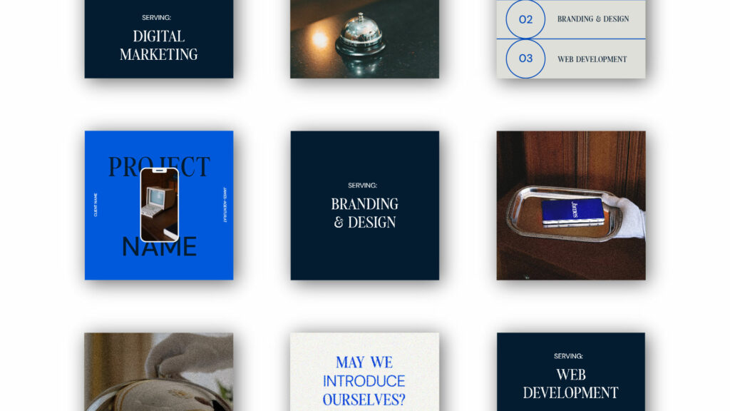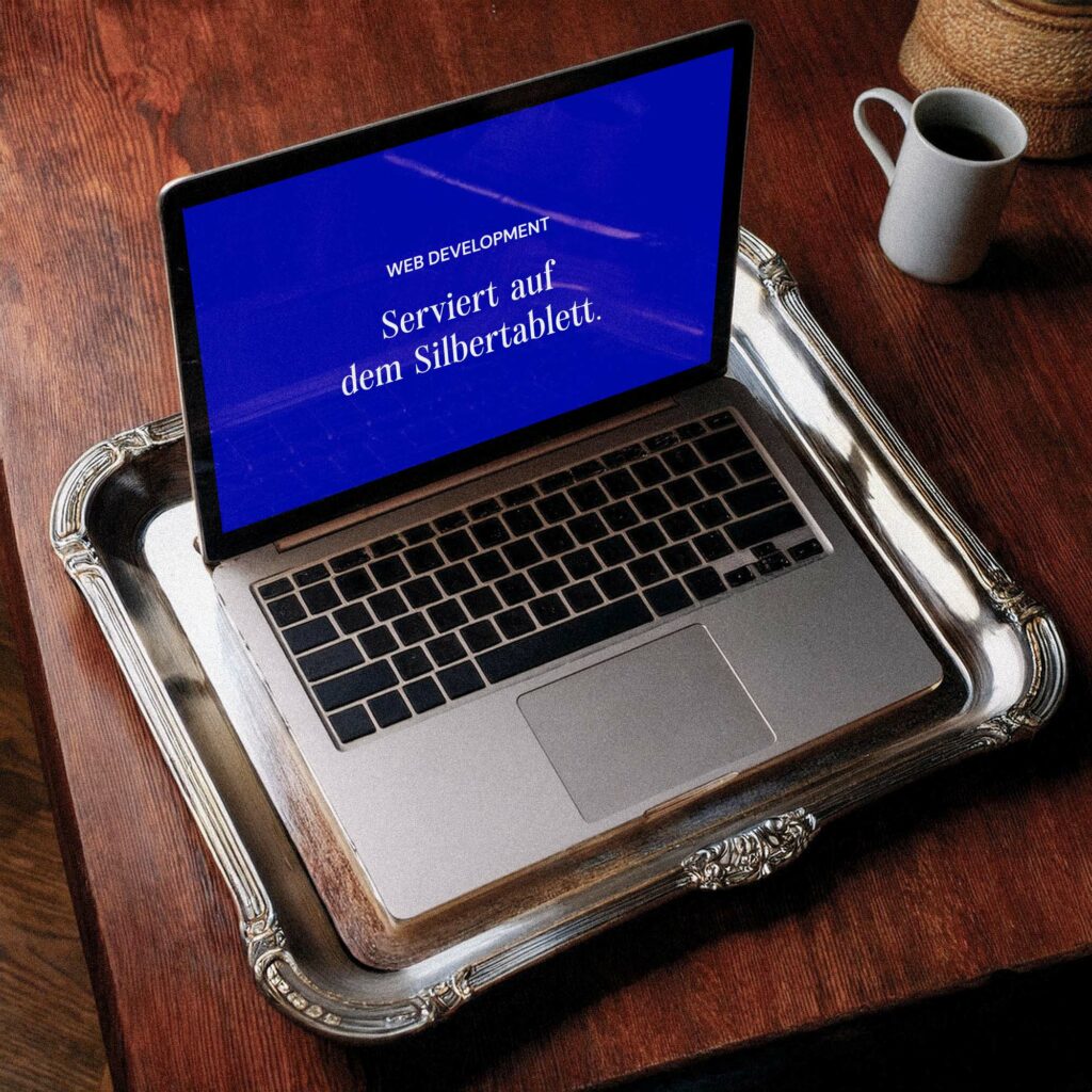 Eine nostalgische Serifenschrift steht für den klassischen Touch und das hochwertige Image, während eine klare, moderne Sans-Serif-Schrift für einen zeitgemäßen und dynamischen Look sorgt. Ein dunkles, klassisches Blau symbolisiert die Eleganz und Tradition des Butlers, während ein lebendigeres Blau für den modernen und innovativen Ansatz der Agentur steht. Die Bildsprache, die großteils mit KI generiert wurde, setzt auf eine kreative Kombination aus traditionellen Elementen, wie einem Silbertablett oder einer Klingel und moderner Technik. Dadurch wird die Verbindung zwischen klassischem Servicegedanken und digitaler Innovation anschaulich vermittelt. Mit diesem Konzept präsentiert sich James als Digitalagentur, die nicht nur digitale Lösungen bietet, sondern diese auch stilvoll und mit einem besonderen Touch „serviert“.